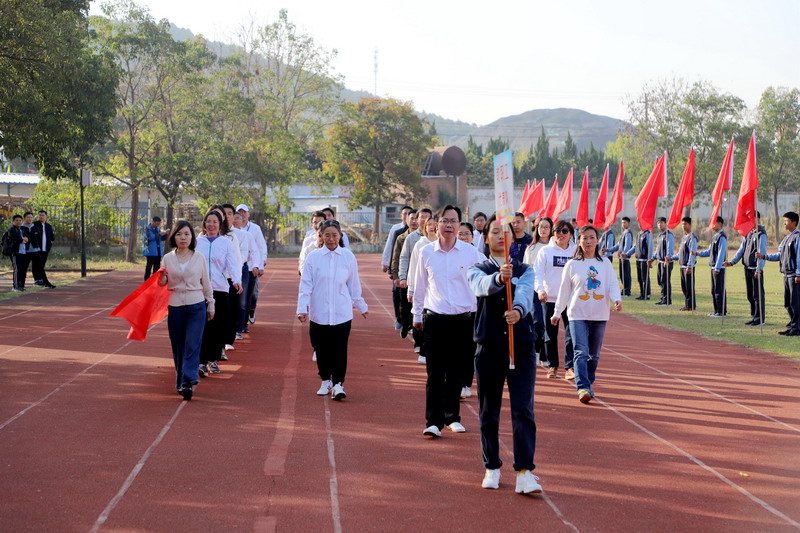 伴隨著雄壯激越的運(yùn)動(dòng)員進(jìn)行曲,師生們滿懷喜悅的心情,邁著豪邁有力的步伐,以飽滿的姿態(tài)列隊(duì)入場(chǎng)。國(guó)旗隊(duì)、校旗隊(duì)、紅旗隊(duì)、花束隊(duì)首先走過主席臺(tái),各學(xué)院代表隊(duì)、裁判員隊(duì)及教職工代表隊(duì)緊隨其后,現(xiàn)場(chǎng)掌聲雷動(dòng),笑聲朗朗,頓時(shí)成為一片歡樂的海洋。