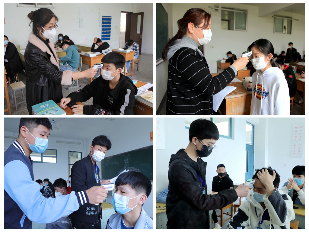 口罩、消毒、測體溫,一個不能少……學校實行錯時錯峰上下學,錯時錯峰就餐,為學生提供盒飯,所有學生一律在教室用餐,最大限度避免聚集和交叉感染。各二級學院、部門主要負責人“包片”負責各項防疫工作,下班時間延長;全體黨員和行政人員下沉班級,協(xié)助各班班主任做好工作。